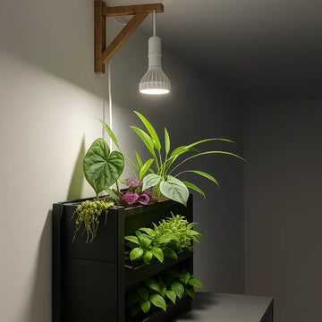 Plaats de lamp meestal op 30–60 cm afstand. Hoe dichterbij, hoe sterker het licht, maar voorkom oververhitting bij gevoelige planten.